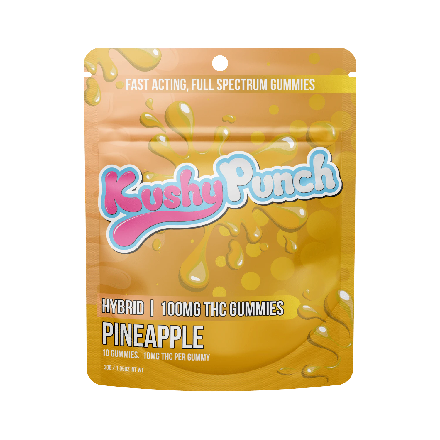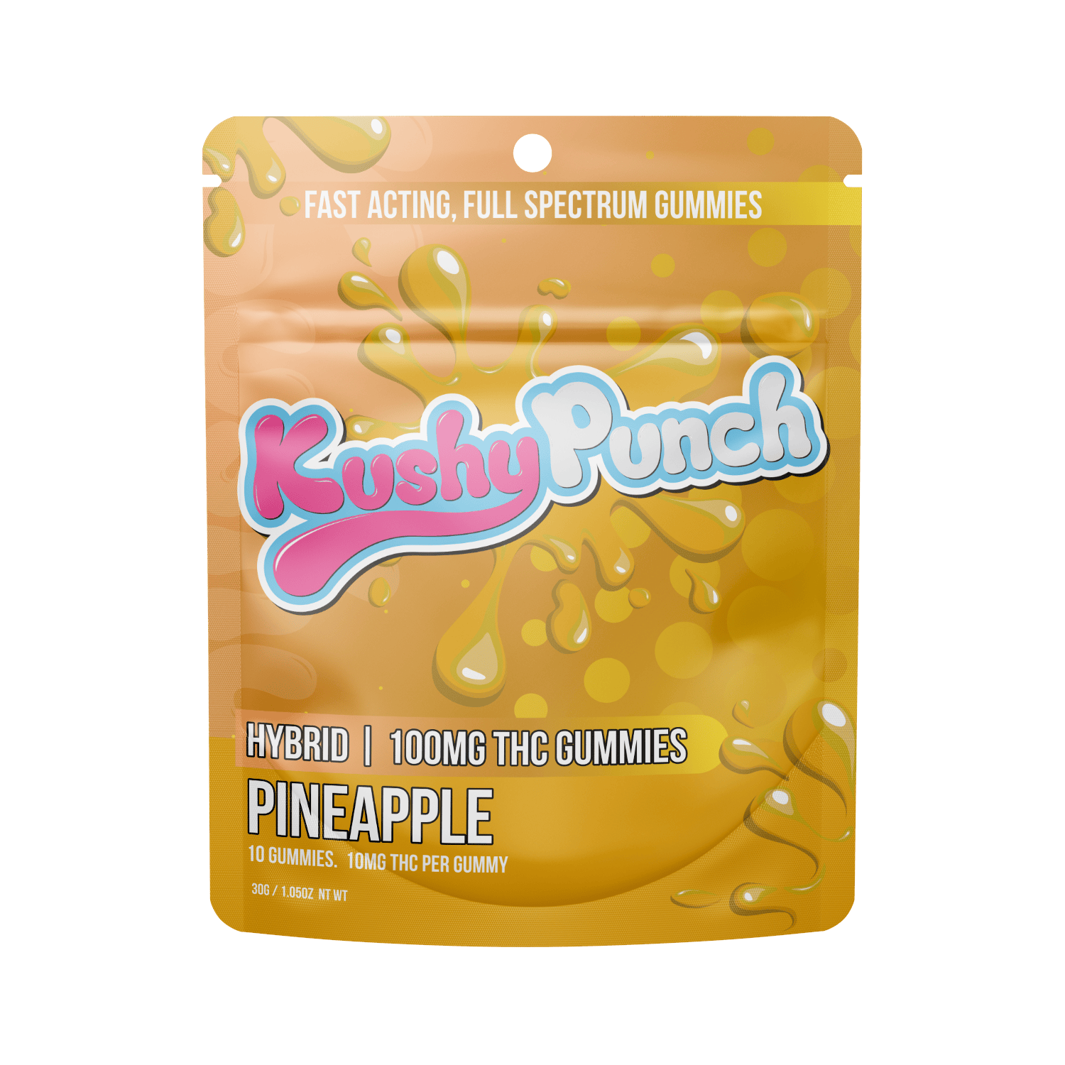 10 Individual Kushy Punch Gummies -100mg THC -Hybrid -Pineapple Flavor -Contains Full Spectrum Oil